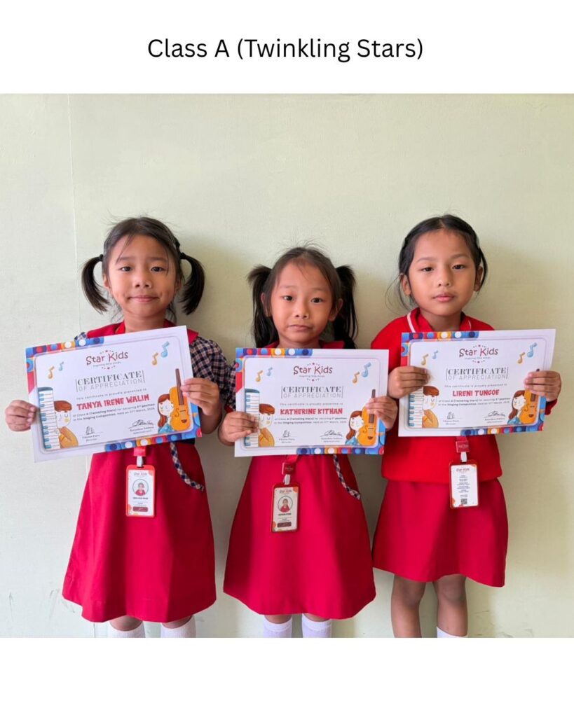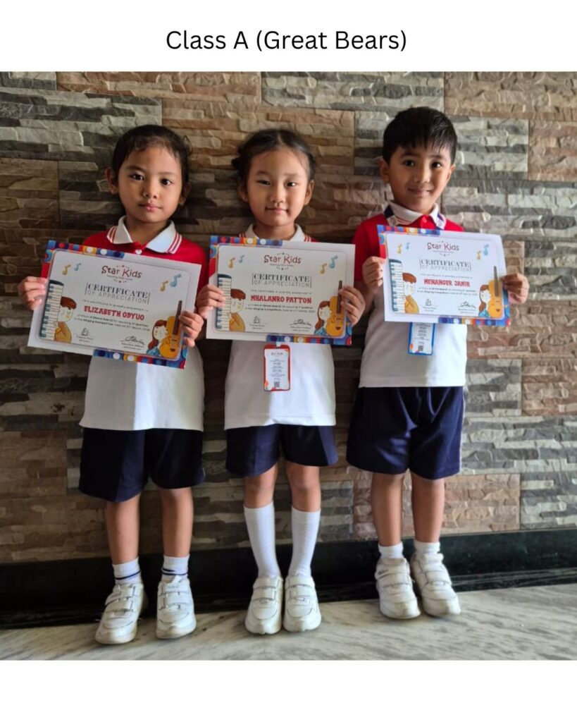 The event featured a variety of performances that highlighted the talents of the kindergarteners from Precious Pearls, Heavenly Waters, Shining Pluto, Polaris and Smart Earthlings. Heavenly Waters presented a lively choreography, “Every Move I Make,” and the students of Shining Pluto and Polaris performed the play “The Little Seeds That Grew.” A soulful solo performance, “Girl on Fire,” was presented by Elina B. Swu from Heavenly Waters. The supervisor of Star Kids, Madam Tainla presented the 100% Attendance Award, after which she delivered the School Annual Report.